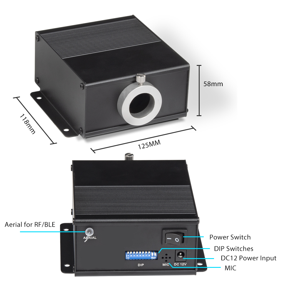 | Item Number | Standard Aperture | Optional Aperture | Maximum Fiber Capacity (0.75mm fiber tails) | Housing Material | Housing Color | Dimensions (mm) | Optional Remote Control |