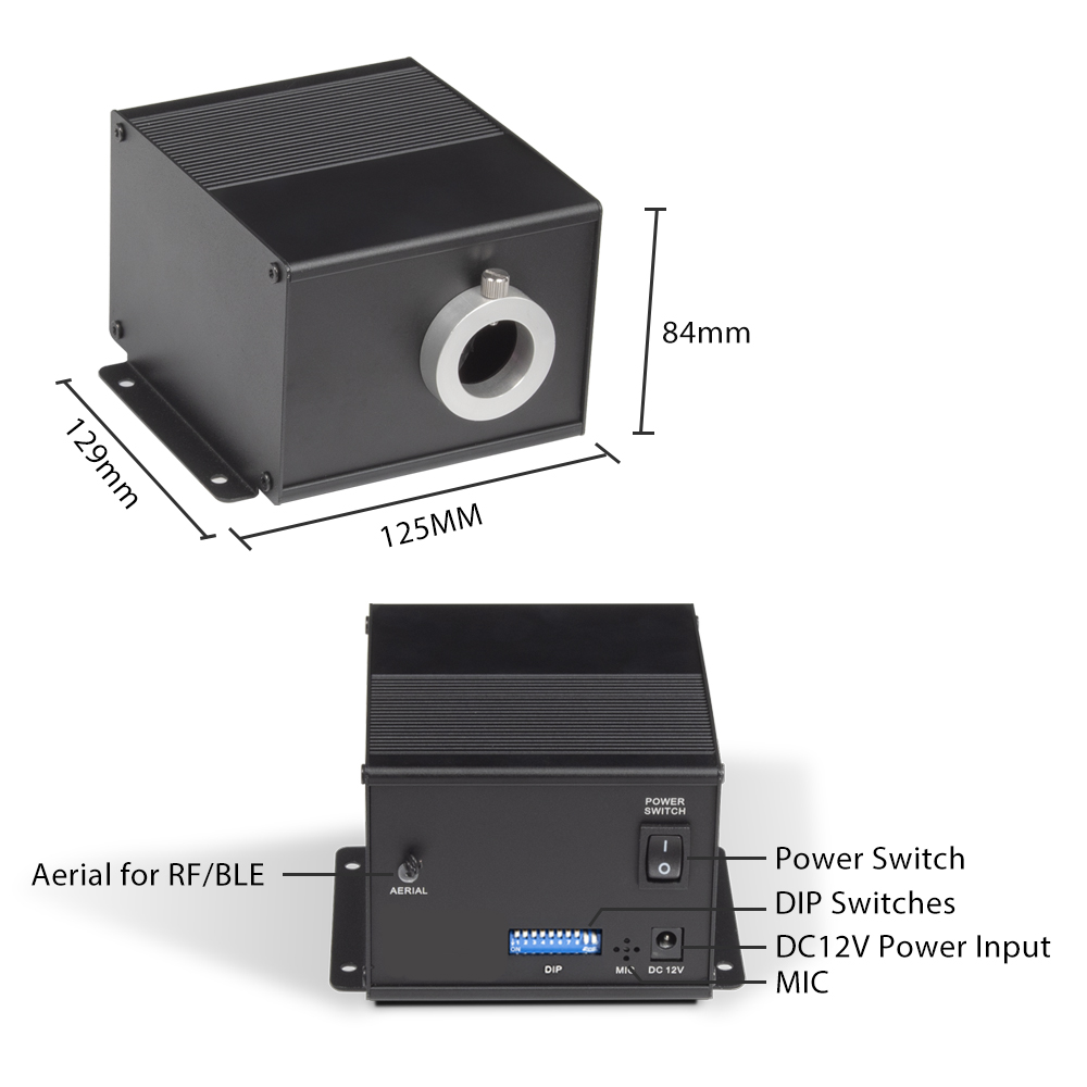 | Item Number | Standard Aperture | Optional Aperture | Maximum Fiber Capacity (0.75mm fiber tails) | Housing Material | Housing Color | Dimensions (mm) | Optional Remote Control |